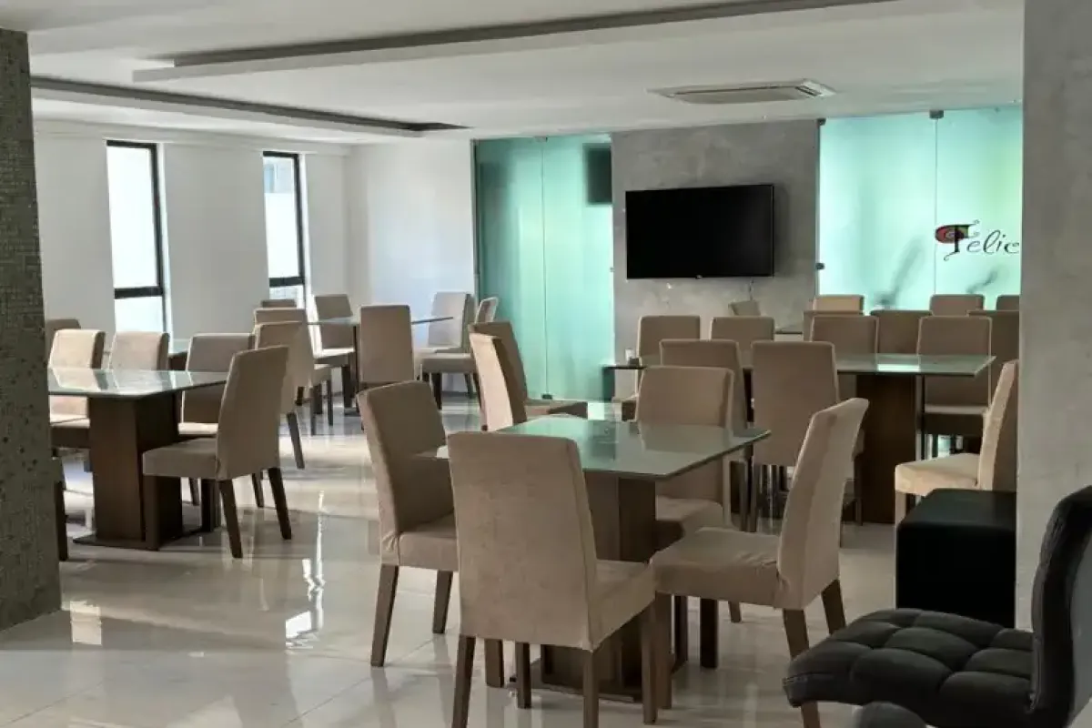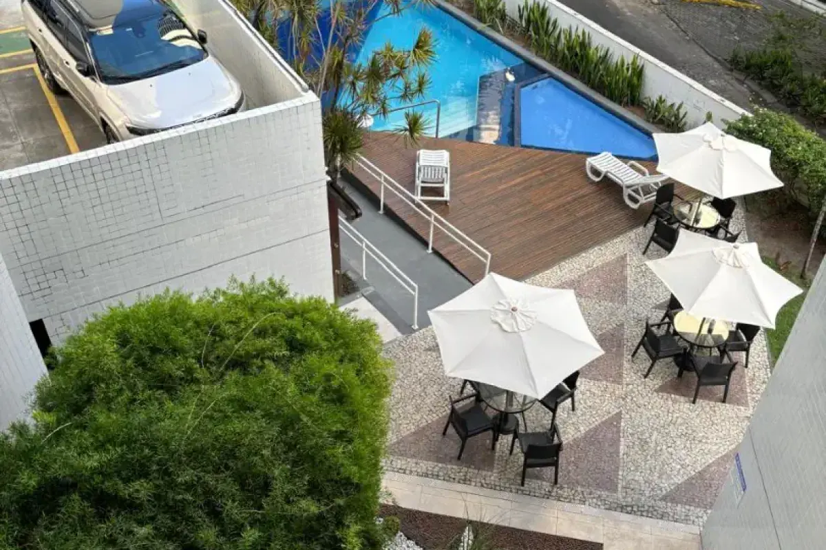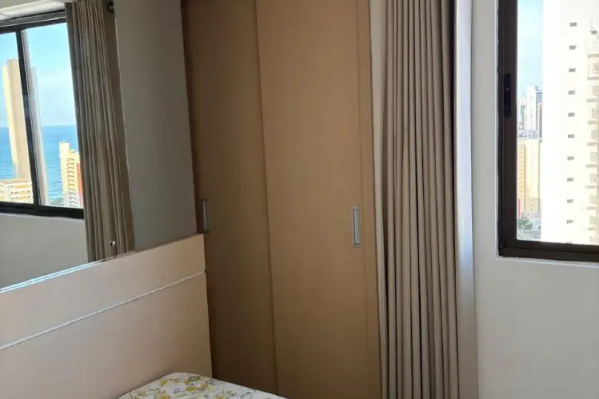 com 1 quarto social, sala de estar e de jantar, wc social, cozinha, 43,12m de área privativa + 11m de área de estacionamento, 21° andar com altura de 25°, garagem coberta, mobiliado com jogo de sala de jantar, sofá-cama, rack, tv, armários na cozinha, fogão, geladeira, microondas, cama box, 2 guarda-roupas, sendo um com duas portas e outro com 8 portas, bancada de trabalho, ar condicionado split, cortinas black out, armários no wc, linda visão do mar e de Boa Viagem. Prédio com terreno próprio, muito arborizado, piscina com acessibilidade e níveis de adulto e criança, wcs de apoio, parquinho, academia, salão de festas climatizado, lavanderia, mini mercado. Prédio vencedor do Troféu ADEMI-PE 2011, conforme foto. Próximo ao Shopping Recife, supermercados, bares, restaurantes, academias, farmácias, pet shopping. Tx condomínio 580,00 (inclui água e gás). IPTU 130,00/mês Oportunidade!!