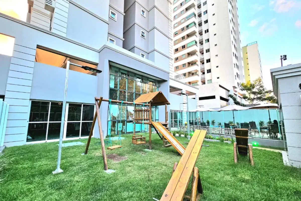APARTAMENTO O imóvel possui 54m² de área útil, Varanda Gourmet, 2 Quartos, 1 Sendo Suíte, Sala para 2 Ambientes, WC Social, Cozinha, Area de Serviço e vaga de garagem. Apartamento do Lado Nascente, com a varanda a um metro de distância do Jardim Elevado. Com Projeto Arquitetônico, Projeto Executivo (Elétrica, Hidráulica, Marcenaria, Marmoraria e etc). EMPREENDIMENTO 2 Torres | 6 Apartamentos por andar Hall Decorado Depósito para Encomendas Bicicletário Portaria 24h Salão com Copa Churrascaria Piscina Adulto + Prainha para Crianças Espaço Fitness (Academia) Playground Campo de Futebol Wifi nas Áreas Comuns Alarme com Sensor de Presença Câmeras de Segurança Taxa de Condomínio: R$370,00 (Água e Gás Individualizados). ACEITA FINANCIAMENTO HABITACIONAL!