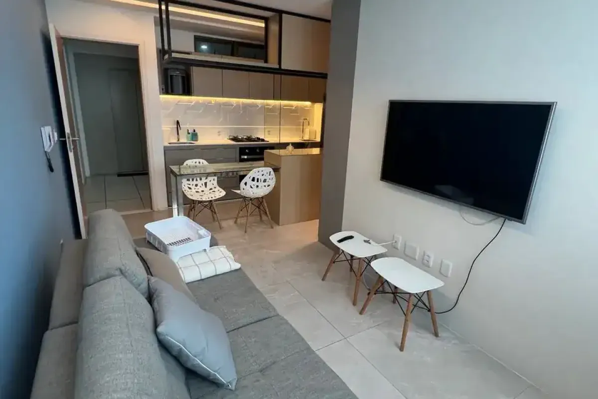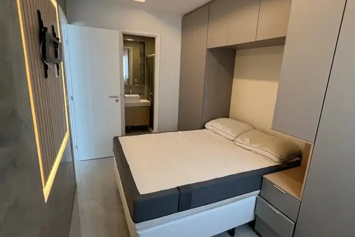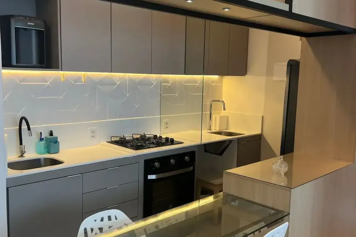 Apartamento de 43 metros quadros. 2 quartos, sendo uma suíte. 1 vaga de garagem coberta. Móveis planejados na cozinha, corredor, banheiros e quarto (suíte). Porcelanato, pia da cozinha em nano-glass e planejados em MDF. Incluso cooktop, forno, purificador e geladeira. Camas e sofá podem estar disponível caso não seja vendido separadamente. Condomínio: Piscina Área gourmet Lavanderia Omo Mercadinho Playground Portaria 24h
