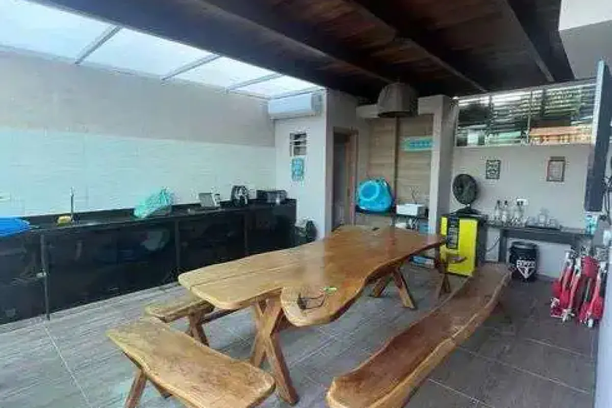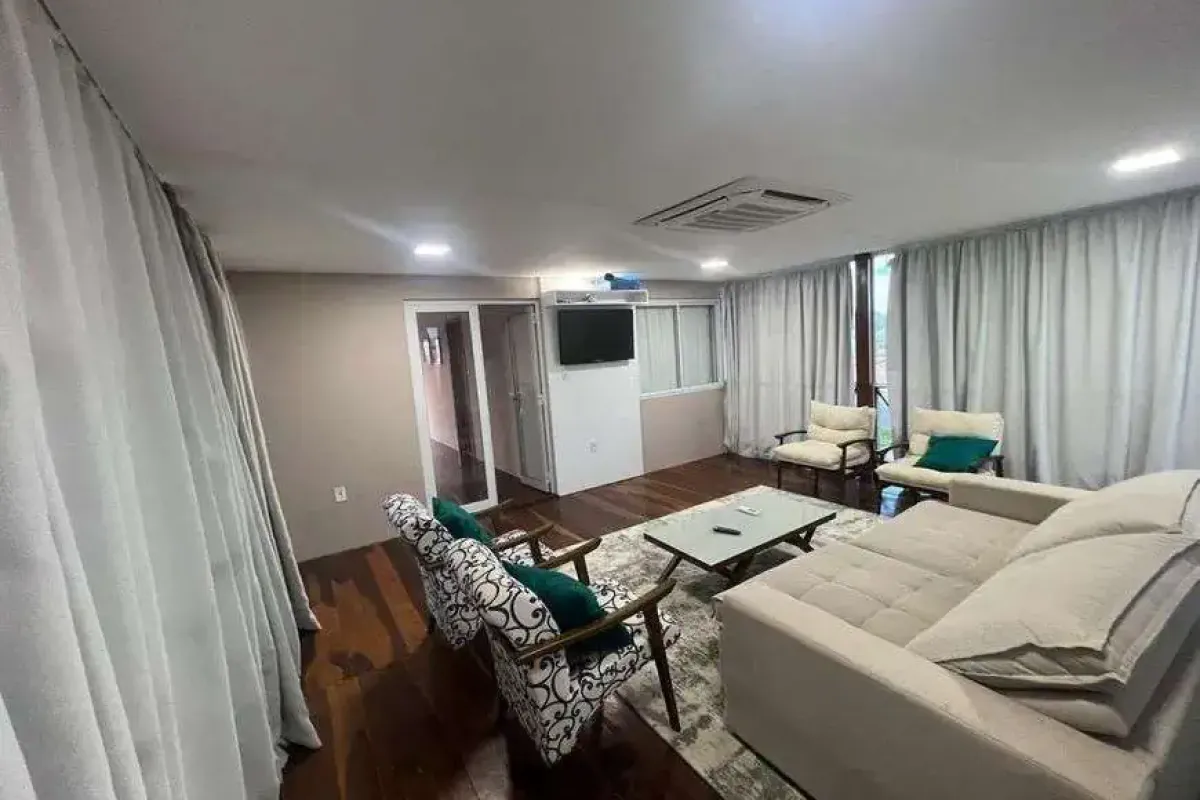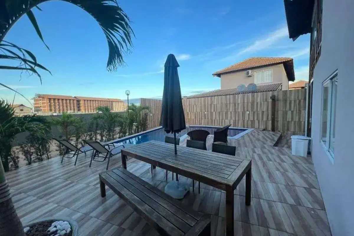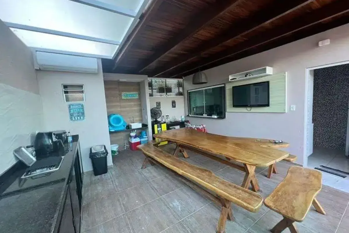A casa com 280 metros quadrados com 4 quartos sendo 4 suites e 5 banheirosPossui jardim, salão para festas e eventos, área de brinquedo para as crianças, espaço gourmet.Vai lhe possibilitar curtir os dias mais quentes na piscina, praticar diversos esportes na quadra poliesportiva, todo o conforto do ar condicionado nos dias mais quentes.Já está com os móveis.Fica em um condomínio fechado.Espaço reservado para preparar o seu churrasco.A casa fica a 300 metros da praia e a 3,6 km da Igrejinha São BeneditoCasa de luxo que oferece:4 quartos, 8 camas 5 banheirosPiscina Privativa e iluminação Área Gourmet c/ Churrasqueira Estacionamento privativoCozinhaSala de Estar Wi-FiAr condicionado em todos os quartos4 Tvs Varanda Comporta 15 pessoas Na área em comum do condomínio o hóspede pode usufruir da piscina , parque infantil, sauna, salão de festas, campo de futebol.Nossa casa fica próximo do almoço