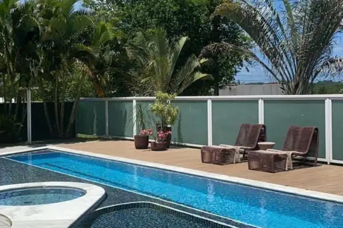 Exclusividade, Conforto e Segurança em Meio à Natureza Imagine viver em um verdadeiro refúgio de luxo, onde cada detalhe foi pensado para proporcionar bem-estar, privacidade e sofisticação. Neste condomínio de alto padrão, você acorda ao som dos pássaros, envolvido por uma paisagem exuberante, sem abrir mão da segurança e do conforto que sua família merece. A segurança armada garante total tranquilidade, permitindo que você desfrute de cada espaço com liberdade. A incrível área de lazer convida a momentos inesquecíveis, seja relaxando na piscina com hidromassagem ou aproveitando o espaço gourmet completo, equipado com churrasqueira e forno de pizza, perfeito para receber amigos e familiares. Esta magnífica residência oferece 684m² de área construída em um terreno de 1.300m², entregando um equilíbrio perfeito entre amplitude e privacidade. São cinco suítes, incluindo uma suíte master com banheira para seus momentos de relaxamento, além de uma suíte de serviço. Os espaços internos são distribuídos com sofisticação: Sala living e sala de jantar, com uma atmosfera aconchegante e imponente Sala de TV e home office, ideais para lazer e produtividade Cozinha ampla e moderna, projetada para atender às mais exigentes necessidades Varanda espaçosa, perfeita para apreciar o entardecer e os jardins ao redor Área de serviço e lavabo, garantindo funcionalidade ao dia a dia Depósito e garagem para 8 veículos, oferecendo praticidade e segurança Esta residência é um convite ao conforto absoluto, onde exclusividade e sofisticação se unem em um cenário encantador. Uma experiência única de viver bem, cercado pela natureza, com toda a privacidade e segurança que sua família merece. Seu novo lar espera por você. Agende uma visita e encante-se!